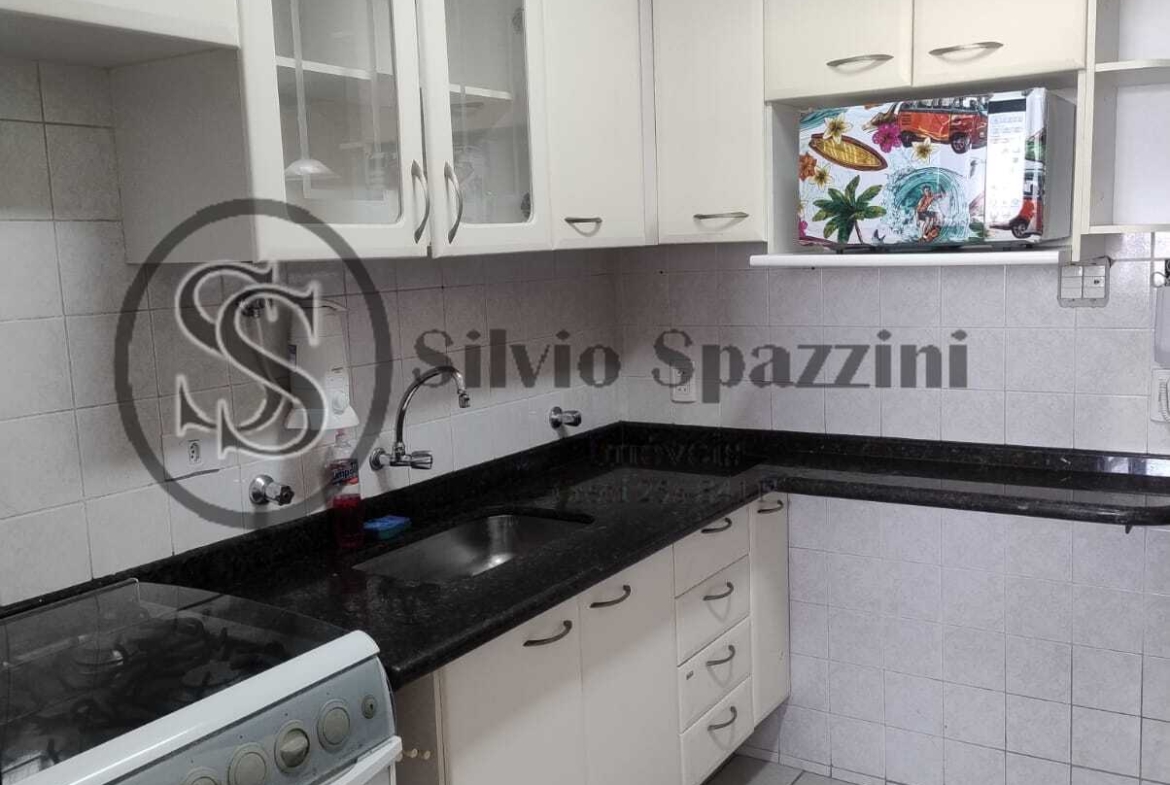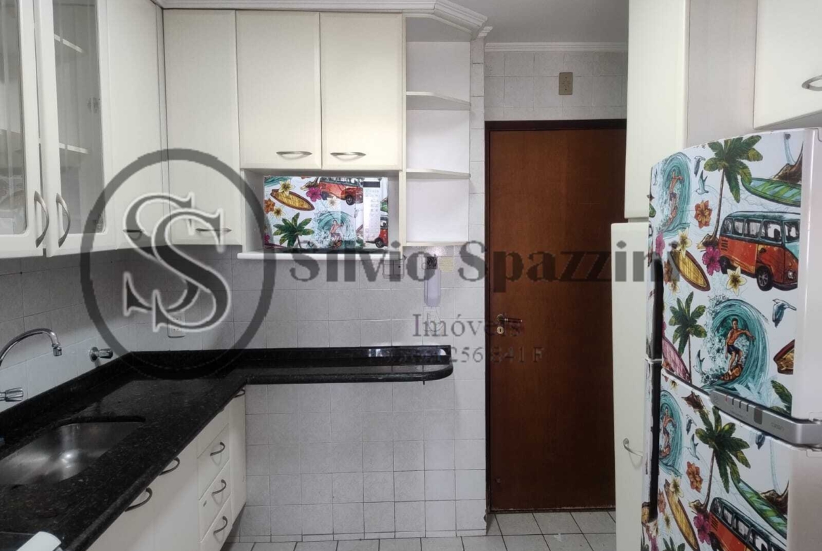 Cozinha completa, equipada com armários, geladeira, fogão e micro-ondas, área de serviço funcional e bem ventilada, 2 vagas de garagem livres e laterais (não são de gaveta).