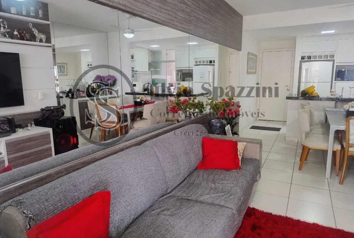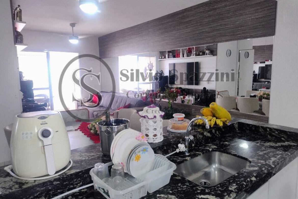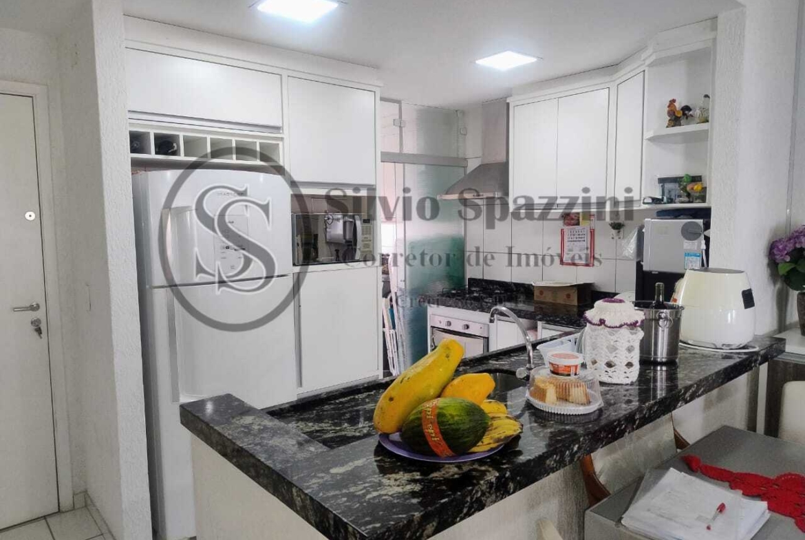 Possui cozinha americana completa integrada com as salas de jantar e estar, completo de armários em todos os cômodos, varanda gourmet com churrasqueira, mobiliado totalmente, duas vagas de garagem, lazer completo adulto e infantil, inclusive cinema.