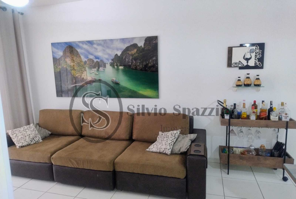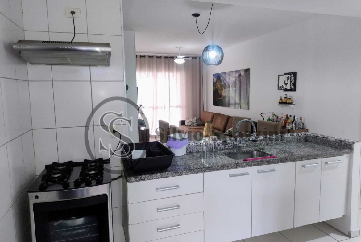 Único condomínio pé na areia do litoral. Possui cozinha americana integrada com as salas de jantar e estar, varanda gourmet com churrasqueira a carvão e fechamento de vidros, uma vaga de garagem, lazer completo adulto e infantil, inclusive cinema e mobiliado.